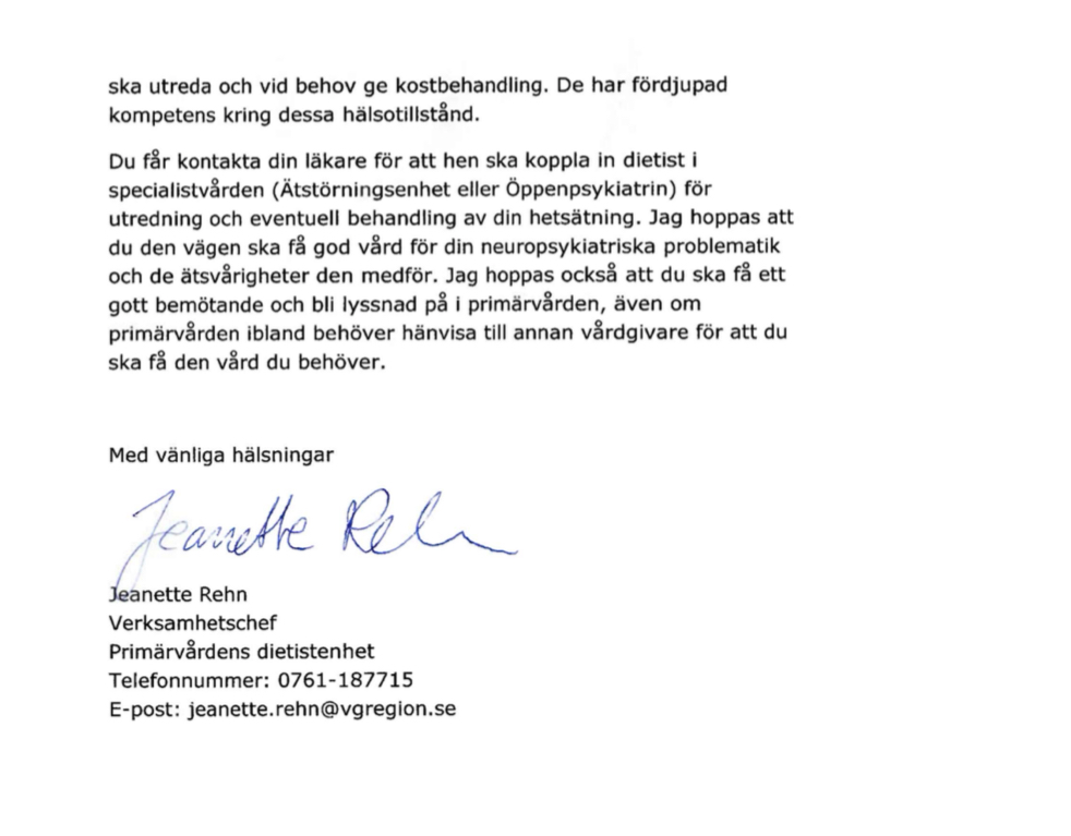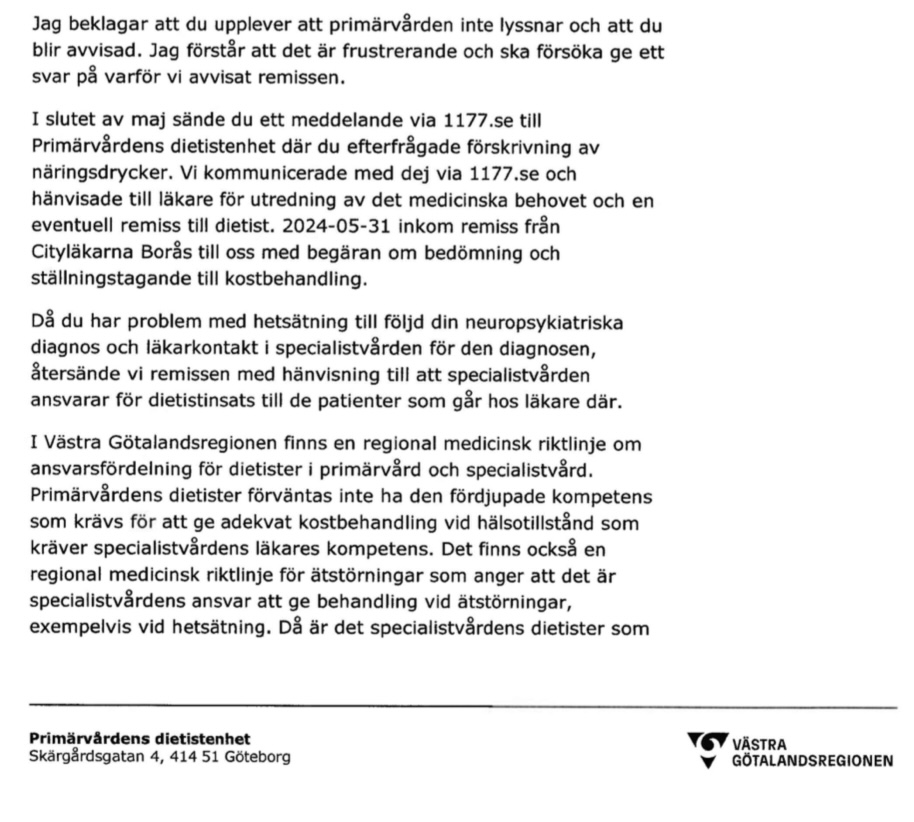 primärvårdens dietistenhet ansvar för nutritionsbehandling. När läkare inom specialistsjukvård har behandlingsansvar för aktuell funktionsnedsättning/sjukdom har specialistsjukvårdens dietister på sjukhusen ansvar för nutritionsbehandling.